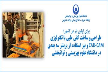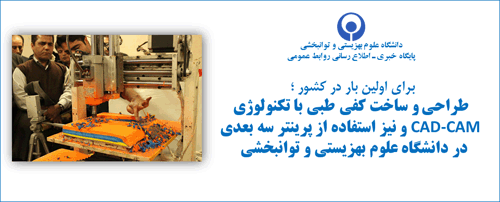 طراحی و ساخت کفی طبی با تکنولوژی CAD-CAM و نیز استفاده از "پرینتر سه بعدی"، برای اولین بار در کشور، توسط اساتید و کارشناسان گروه آموزشی ارتوپدی فنی دانشگاه علوم بهزیستی و توانبخشی انجام شد.