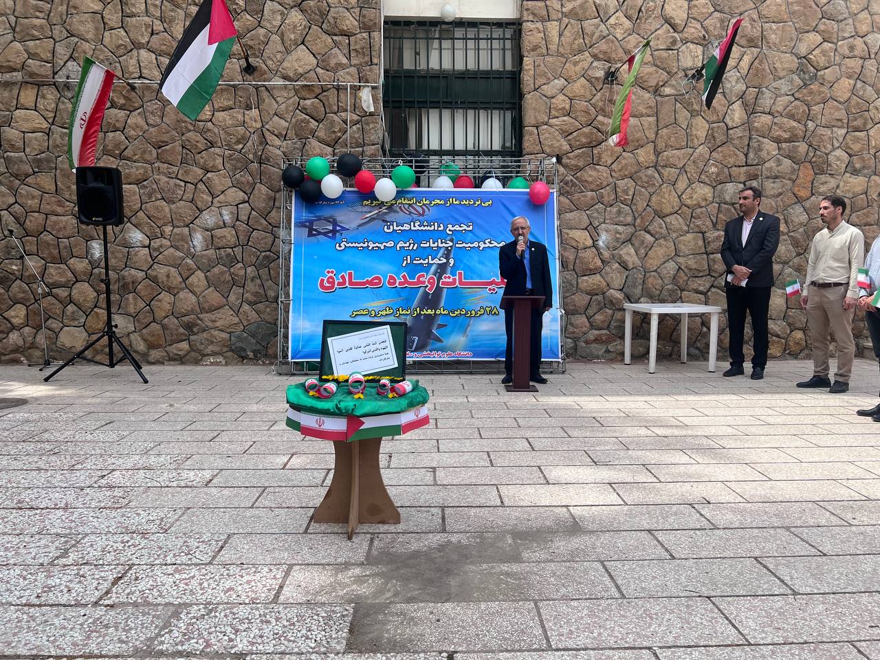 اجتماع دانشگاهیان دانشگاه علوم توانبخشی و سلامت اجتماعی در محکومیت جنایات رژیم صهیونیستی و حمایت از عملیات وعده صادق روز سه شنبه ۲۸ فروردین ماه ۱۴۰۳ در محوطه غدیر این دانشگاه برگزار شد.