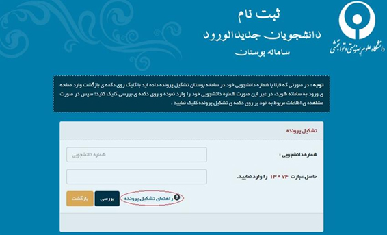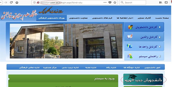 2- مراجعه به سايت boostan.uswr.ac.ir و ورود به آیکون دانشجویان جدیدالورود برای انجام تشکیل پرونده.