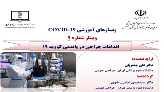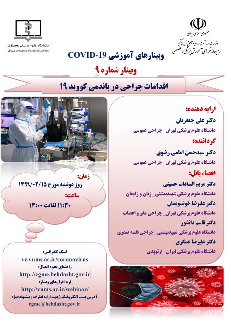 موضوع 9- اقدامات جراحی و پاندمی کووید 19 - روز دو شنبه مورخ 99/2/15 - از ساعت 11/30 الی 13