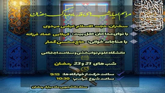 برگزاری مراسم شب های قدر در دانشگاه علوم توانبخشی و سلامت اجتماعی