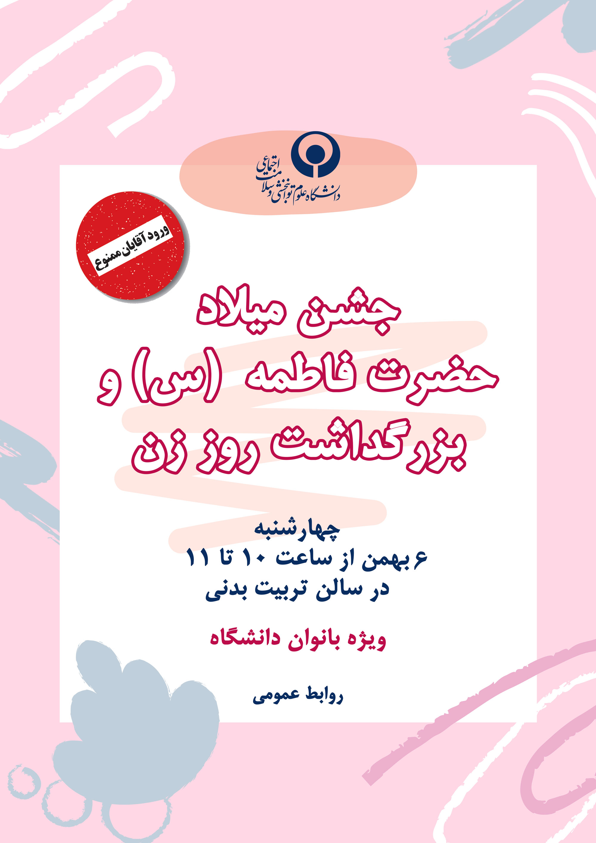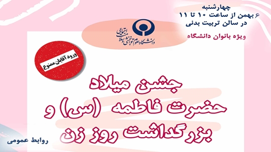 جشن « ولادت حضرت زهرا (س)، گرامی داشت مقام زن و مادر »، ویژه کارمندان خانم دانشگاه علوم توانبخشی و سلامت اجتماعی امروز (چهارشنبه) در سالن تربیت بدنی دانشگاه برگزار شد و مورد استقبال جمع بزرگی از کارکنان زن دانشگاه قرار گرفت.