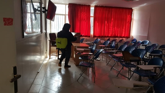 با ضدعفونی تمامی بخش ها و محیط دانشگاه برای پیشگیری از گسترش ویروس کرونا؛