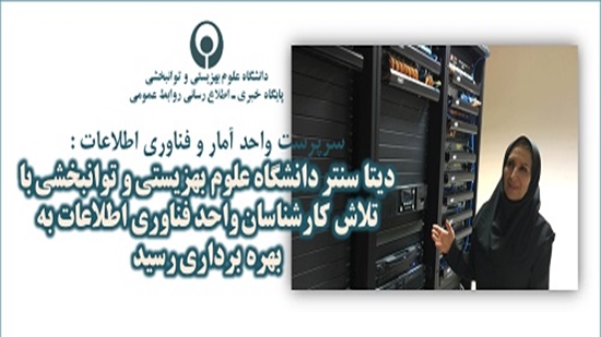 مهندس " فاطمه اسکروچی " مدیر واحد فناوری اطلاعات (IT) دانشگاه گفت : دیتا سنتر دانشگاه علوم بهزیستی و توانبخشی با تلاش کارشناسان واحد فناوری اطلاعات به بهره برداری رسید تا زیر ساخت لازم برای پاسخگویی به بخش بزرگي از خدمات و فعالیتهای دانشگاه را بربستر فناوری اطلاعات فراهم آورد.