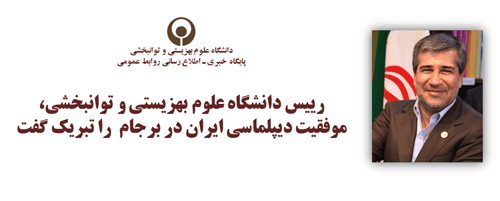 رییس دانشگاه علوم بهزیستی و توانبخشی  با اشاره به پیروزی های دیپلماتیک ایران در موضوع هسته ای ، این موفقیت بی نظیر دیپلماسی جمهوری اسلامی ایران در برجام را تبریک گفت.