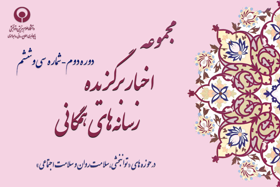 روابط عمومی دانشگاه علوم بهزیستی و توانبخشی، سی و ششم شماره از دوره دوم مجموعه «مهمترین اخبار رسانه های همگانی» مربوط  به سه حوزه سلامت (توانبخشی، سلامت روان، سلامت و رفاه اجتماعی) و حیطه های فعالیت این دانشگاه را منتشر کرد.