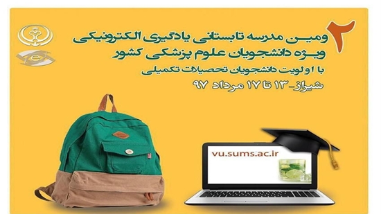 به گزارش وبدای دانشگاه علوم بهزیستی و توانبخشی، دومین مدرسه تابستانی یادگیری الکترونیکی ویژه دانشجویان علوم پزشکی کشور با اولویت دانشجویان تحصیلات تکمیلی ، از 13 الی 17 مردادماه در شیراز برگزار شد.
