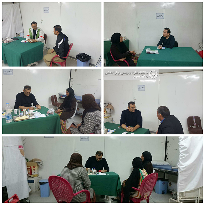 مرحله دوم اعزام گروه های متخصصان و کارشناسان سلامت روان و توانبخشی دانشگاه علوم بهزیستی و توانبخشی از امروز (دوشنبه) به همت بسیج جامعه پزشکی این دانشگاه و حمایت مسئولان دانشگاه، برای کاهش آلام و رفع مشکلات روحی و همچنین توانبخشی زلزله زدگان غرب کشور، به منطقه سرپل ذهاب آغاز شد.