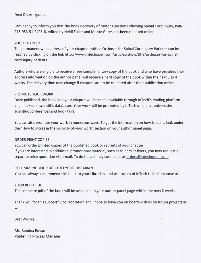 انتشارات Intech ، یکی از معتبرترین و بزرگترین انتشارات اتحادیه اروپا در ارتباط با مسایل پزشکی و توانبخشی است که انتشارات آن برای تمامی متخصصان و کارشناسان علوم پزشکی و توانبخشی جهان ، قابل استفاده می باشد.
