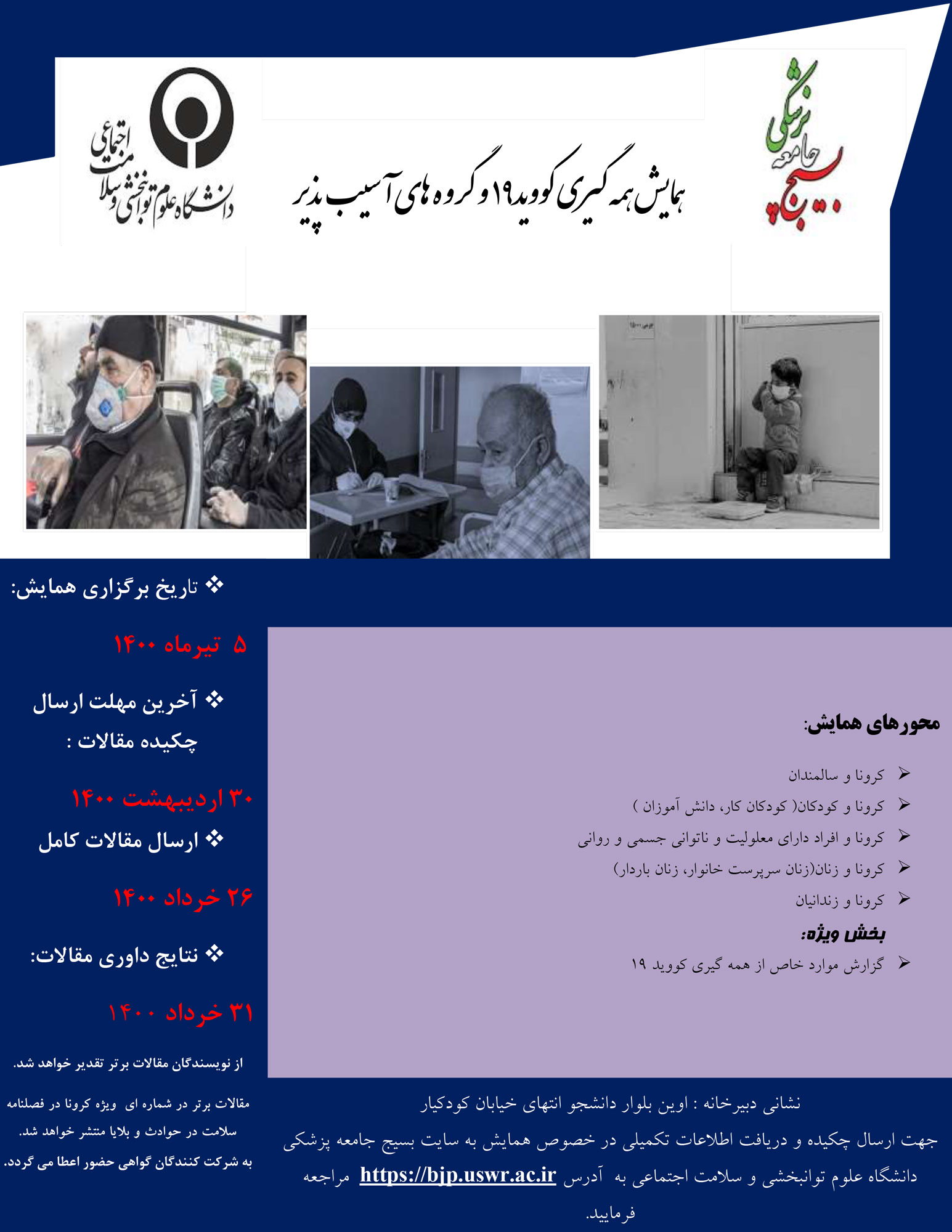 همایش همه گیری کووید 19 و گروه های آسیب پذیر، پنجم تیرماه برگزار می شود/ مهلت ارسال مقالات، 30 اردیبهشت ماه