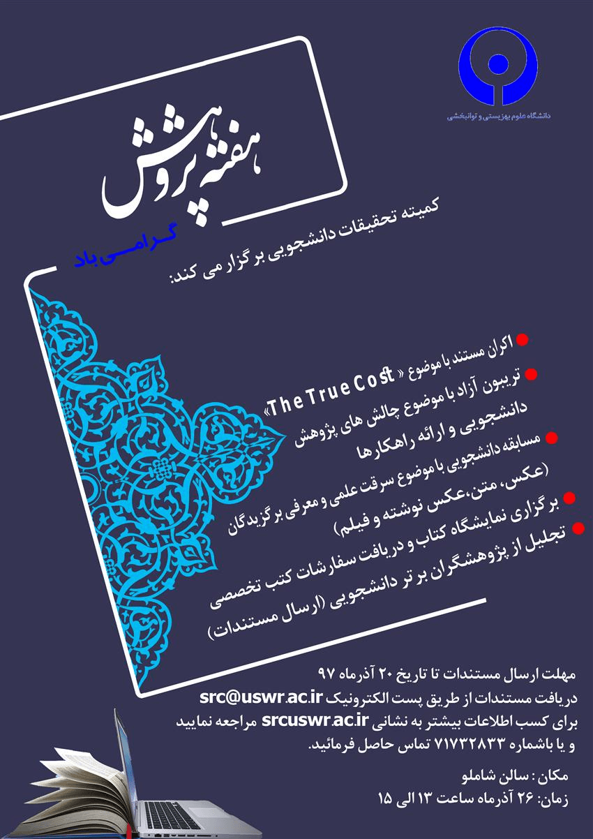 ویژه برنامه بزرگداشت هفته پژوهش، روز دوشنبه (۲۶ آذرماه) برگزار می شود