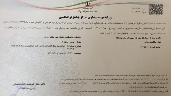 پروانه بهره برداری مرکز جامع توانبخشی « اسما » دریافت شد