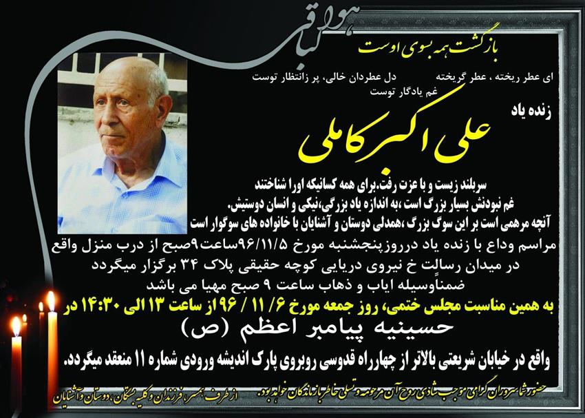 تقدیر این گونه رقم خورد تا یکی از خادمان مردم دیگر در کنارمان نباشد. استاد علی اکبر کاملی، پدر کفش طبی ایران جان به جان آفرین تسلیم کرد و آرام گرفت. او بیش از 60 سال برای خدمت به مردم نیازمند تلاش نمود. استاد کاملی که در دهه 1360 از جمعیت هلال احمر بازنشسته شد بود، یک دوره سی ساله نیز در دانشکده علوم توانبخشی دانشگاه علوم پزشکی ایران خدمت نمود و در سومین دوره کاری خود قرار داشت. اولویت برای او مردم و مراجعینش بودند. به جرات می توان گفت بسیاری از مبتلایان به اختلالات ناحیه پا از مراجعین ایشان بوده اند و از هنرمندی وی بهره برده اند. دقت، ریزبینی، موقع شناسی، خستگی ناپذیری، صداقت، سادگی و بی آلایش بودن در کنار تخصص و تجربه بی بدیل، او را به استادی محرز بدل ساخته بود. جستجو و تلاش برای کسب دانش و اطلاعات بروز، در ایشان بارز و همیشگی بود. این ضایعه غیر قابل جبران را به همه استادان ارتوپدی فنی کشور، دانشجویان و مراجعین ایشان، به خانواده و به خصوص فرزندان عزیزش تسلیت عرض می کنم. از خداوند متعال برای ایشان مغفرت و برای خانواده و بازماندگان صبر و اجر مسئلت می نمایم.