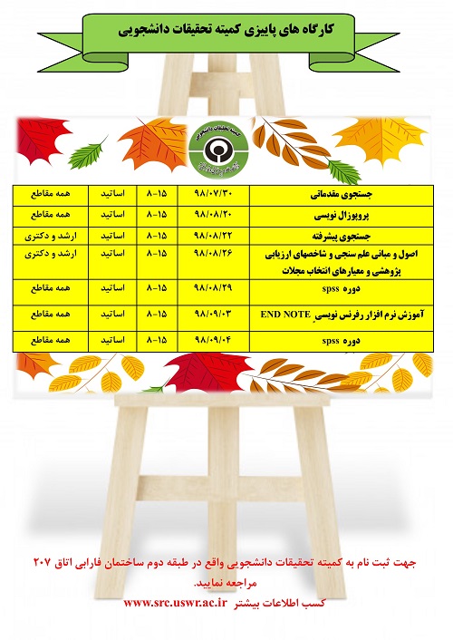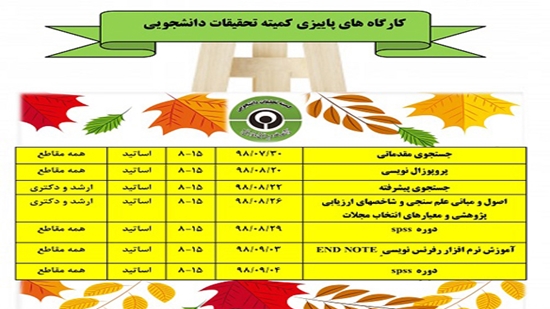 کمیته تحقیقات دانشجویی، عناوین و زمان برگزاری کارگاه های فصل پائیز را اعلام کرد