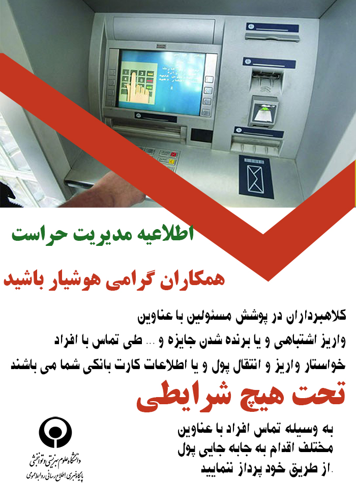 اطلاعیه مدیریت حراست : کلاهبرداری در پوشش مسئولین با عناوین واریز اشتباهی