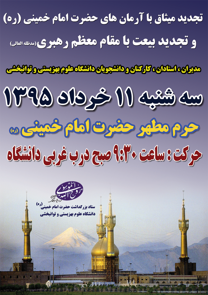 تجدید میثاق با آرمان های حضرت امام خمینی (ره) و تجدید بیعت با مقام معظم رهبری (مدظله العالی) ... گروه خبری : اطلاعیه ها کد خبر : 8571
