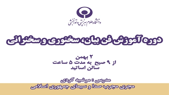 دوره آموزشی « فن بیان، سخنوری و سخنرانی »، روز چهارشنبه (دوم بهمن ماه) در دانشگاه برگزار می شود