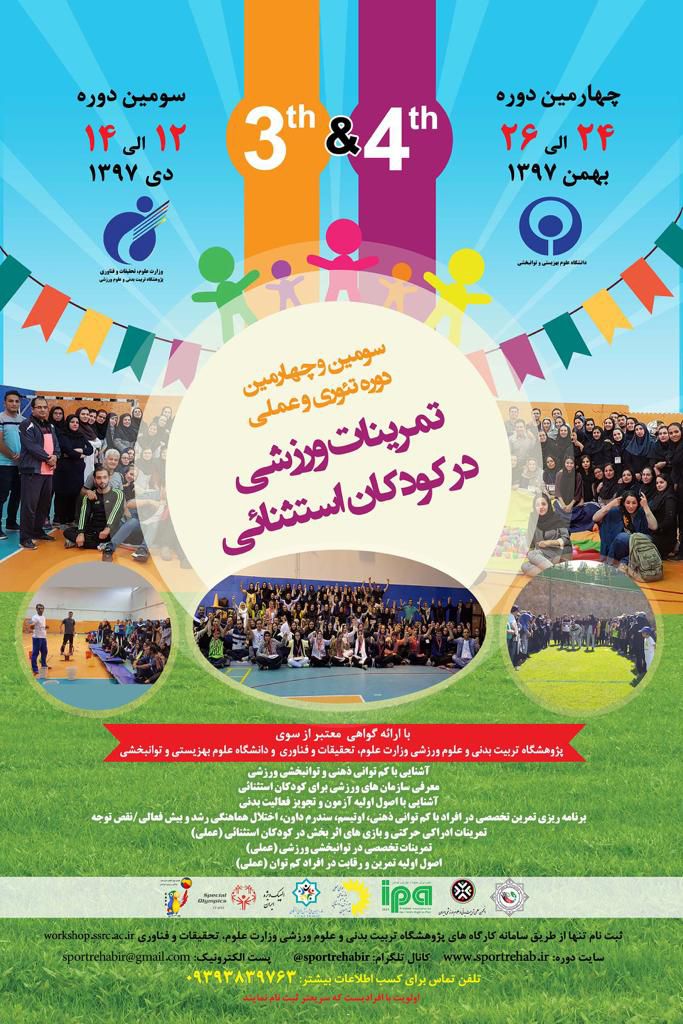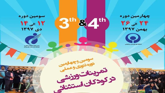 پژوهشگاه تربیت بدنی و علوم ورزشی با همکاری دانشگاه علوم بهزیستی و توانبخشی سومین دوره تمرینات ورزشی در کودکان استثنائی را 12 تا 14 دی ماه برگزار می کند.