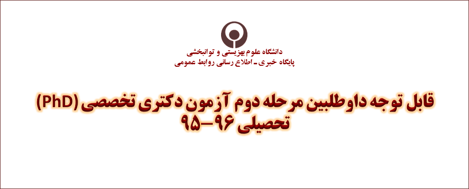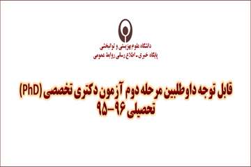 قابل توجه داوطلبین مرحله دوم آزمون دکتری تخصصی (PhD) تحصیلی 96-95