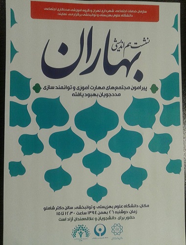 این نشست از ساعت 12/30 الی 15 روز دوشنبه 26 بهمن ماه جاری در سالن دکتر شاملوی دانشگاه علوم بهزیستی و توانبخشی برگزار خواهد شد.