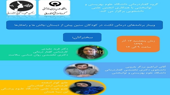 وبینار « برنامه‌های درمانی لکنت در کودکان سنین پیش از دبستان: چالش‌ها و راهکار‌ها »، روز پنجشنبه برگزار می شود