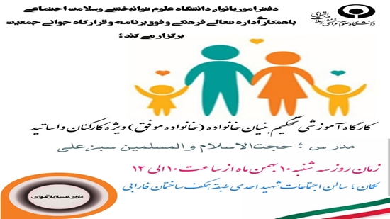 کارگاه آموزشی تحکیم بنیان خانواده (خانواده موفق) سه شنبه 10 بهمن برگزار می شود