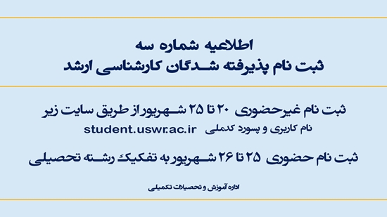 اطلاعیه پذیرش و ثبتنام پذیرفته شدگان کارشناسی ارشد سال 1403
