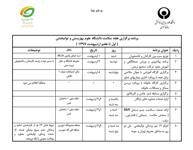 اعلام برنامههای هفته سلامت دانشگاه علوم بهزیستی و توانبخشی