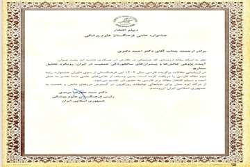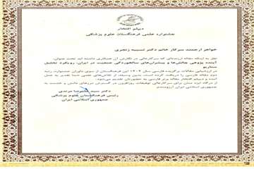 مقاله چاپ شده اساتید دانشگاه در نشریه سالمند: مجله سالمندی ایران، جایزه مقاله برتر و دیپلم افتخار جشنواره علمی فرهنگستان علوم پزشکی را دریافت کرد.