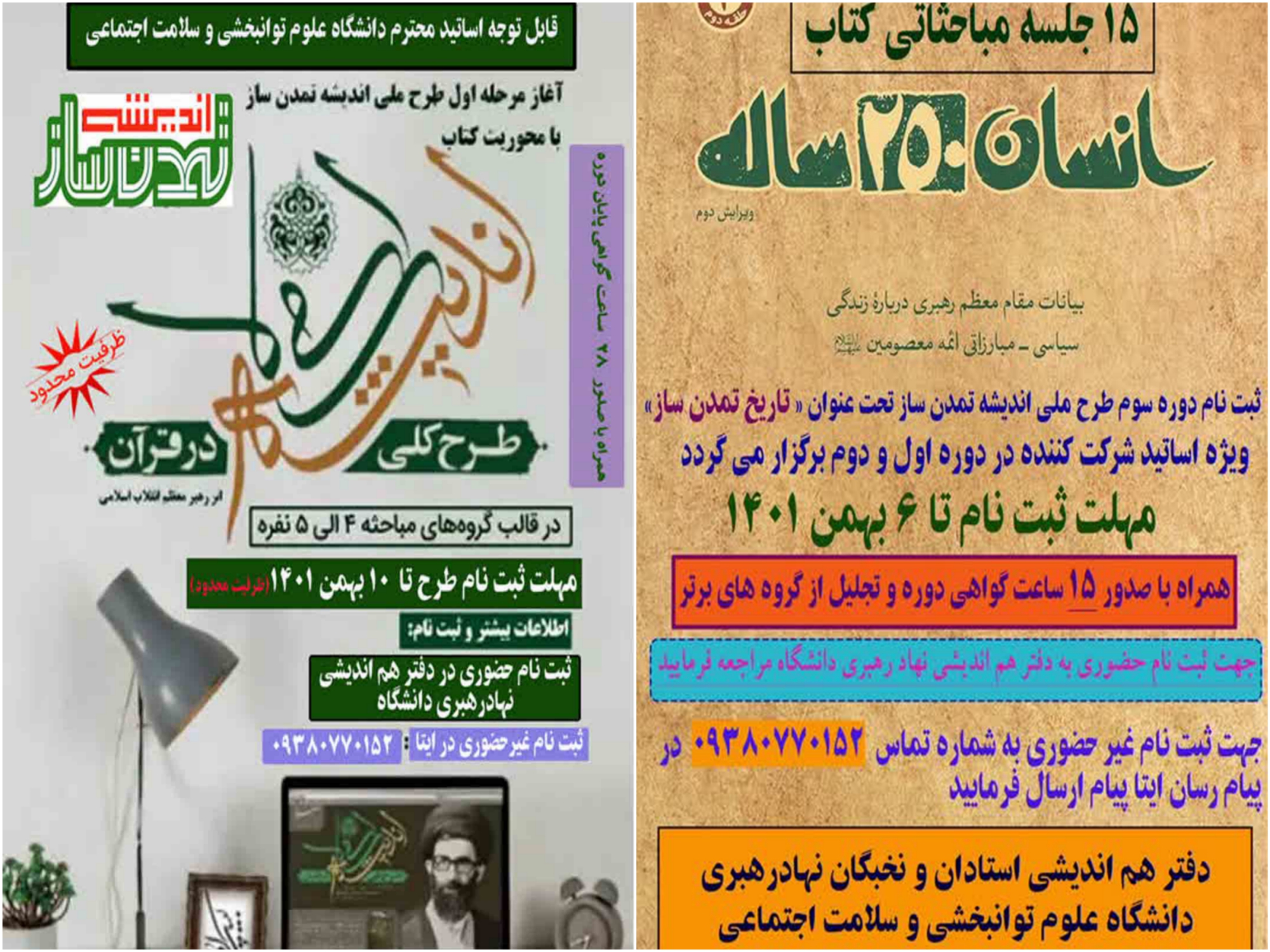- مهلت ثبت نام طرح اندیشه تمدن ساز تا 10 بهمن 1401 می باشد.