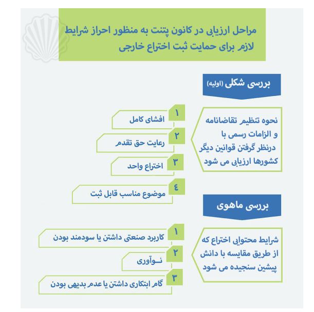 مراحل ارزیابی ثبت اختراع خارجی را میتوانید در شکل زیر مشاهده نمایید:
